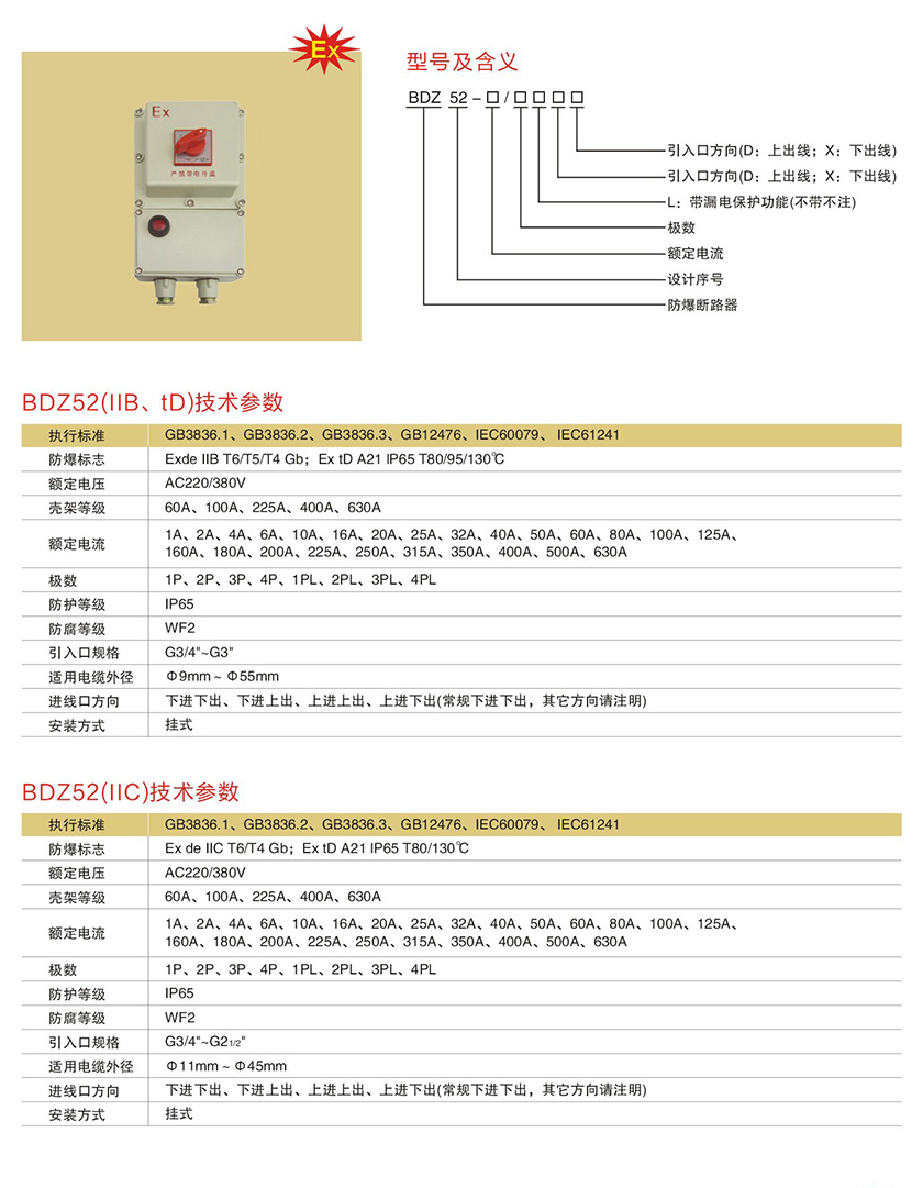 產(chǎn)品中心 防爆配電箱、電器管件類 BDZ52系列防爆斷路器(IIB、IIC)