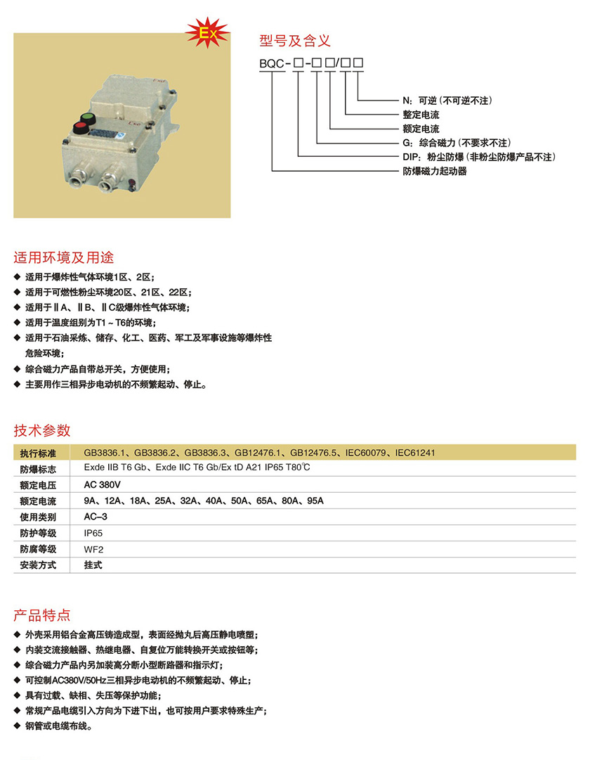 產(chǎn)品中心 防爆配電箱、電器管件類 BQC系列防爆磁力起動器(IIB、IIC)