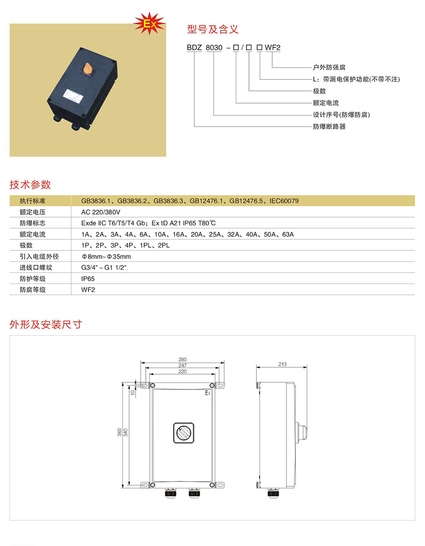 產(chǎn)品中心 防爆配電箱、電器管件類(lèi) BDZ8030系列防爆防腐斷路器(IIB、IIC)