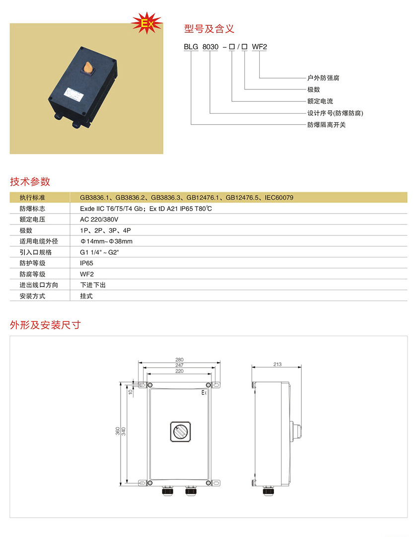 產(chǎn)品中心 防爆配電箱、電器管件類 BLG8030系列防爆防腐隔離開關(guān)(IIB、IIC)