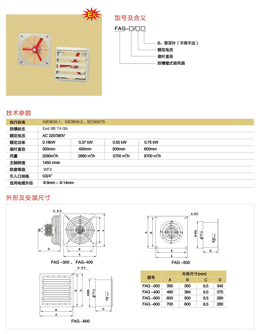 產(chǎn)品中心 防爆配電箱、電器管件類 FAG系列防爆壁式排風(fēng)扇(IIB、IIC)