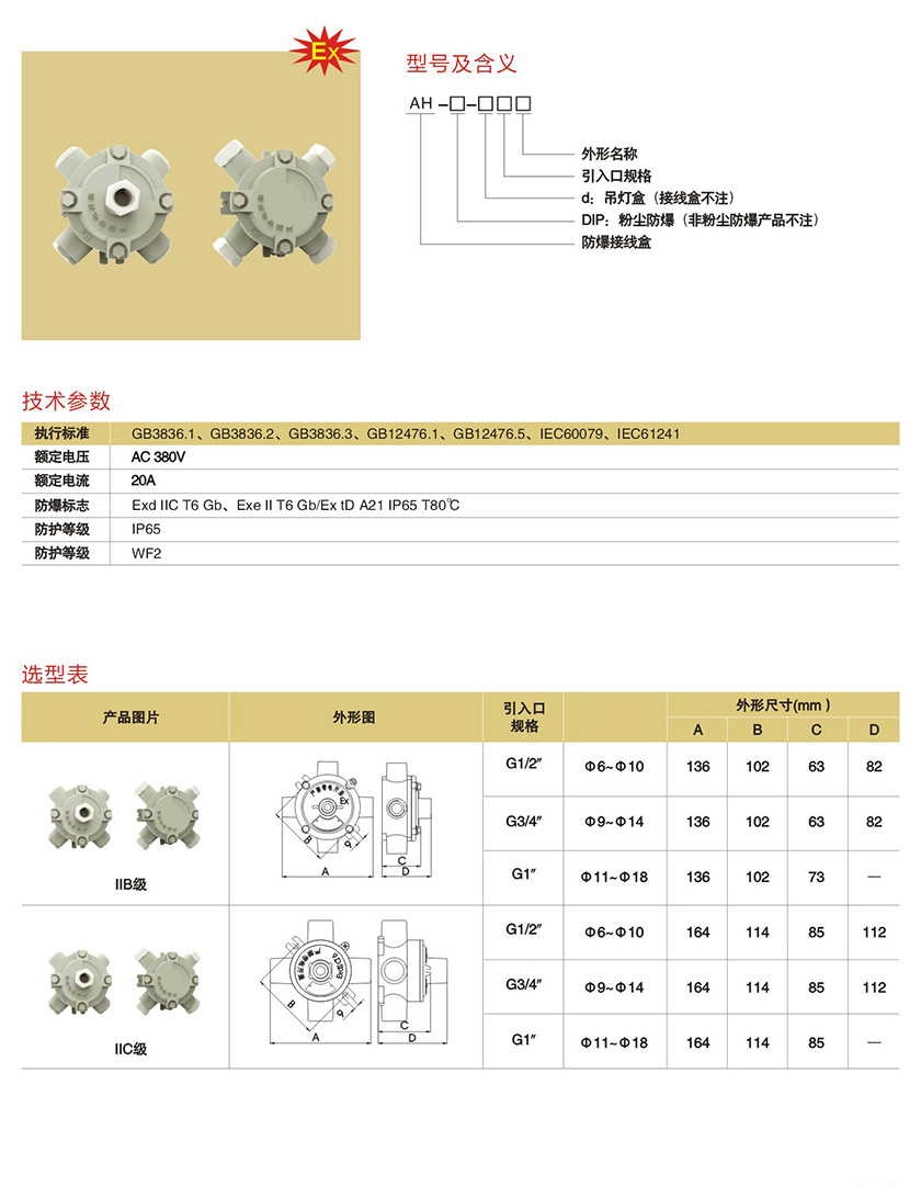 產(chǎn)品中心 防爆配電箱、電器管件類 AH系列防爆接線盒(IIB、IIC)