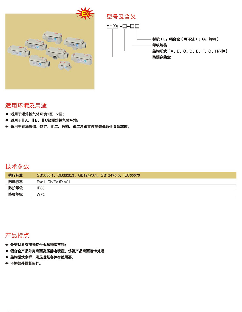 產(chǎn)品中心 防爆配電箱、電器管件類 YHXe系列防爆穿線盒(IIB、IIC)