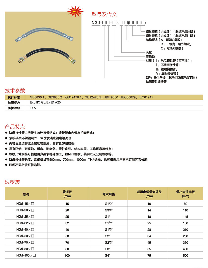 產(chǎn)品中心 防爆配電箱、電器管件類 NGd系列防爆撓性連接管(IIB、IIC)