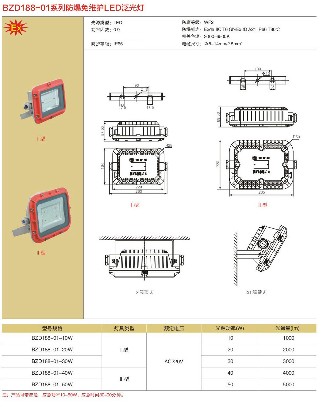 產(chǎn)品中心 LED免維護(hù)防爆燈具系列 免維護(hù)LED防爆泛光燈BZD188-01 Ⅱ型
